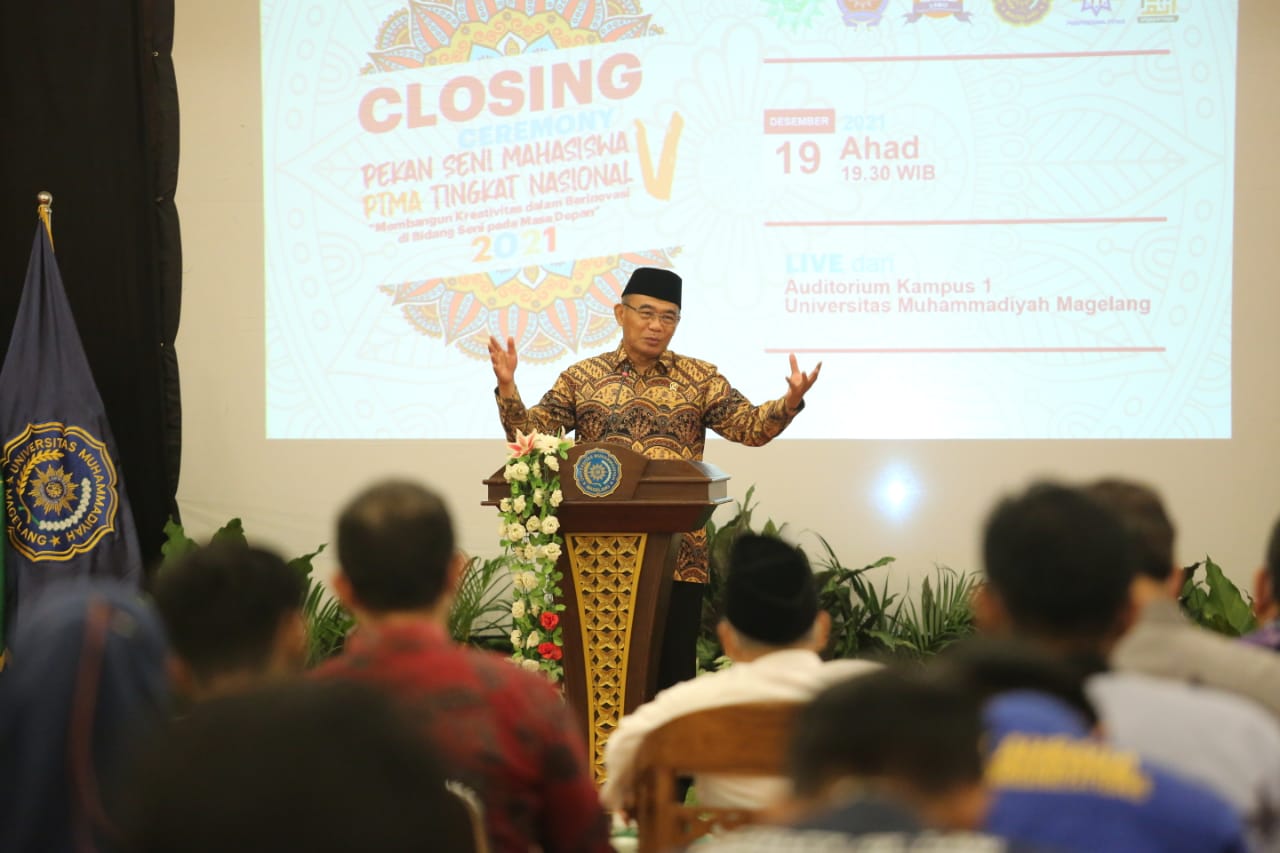 KEMENKO PMK -- Menteri Koordinator Bidang Pembangunan Manusia dan Kebudayaan (Menko PMK) Muhadjir Effendy menghadiri acara Pekan Seni Mahasiswa Perguruan Tinggi Muhammadiyah dan Aisyiyah Nasional ke-V Tahun 2021 yang diselenggarakan di Universitas Muhammadiyah Magelang, Yogyakarta, Minggu (19/12) malam.