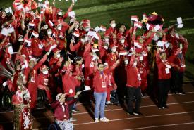 Kemenko PMK - Atlet kontigen Indonesia mengibarkan bendera merah putih pada saat penutupan Asean Paragames ke 11 di Stadion Manahan, Solo, Jawa Tengah (06/08). Presiden Joko Widodo secara resmi menutup perhelatan pesta olahraga Asean Paragames ke 11. Penutupan yang berlangsung secara meriah tersebut diisi oleh musisi ibu kota seperti Yura Yunita, Andien, dan lainnya. Turut menghadiri penutupan Menko PMK dan sejumlah menteri kabinet Indonesia Maju. Tahun 2023 Asean Paragames ke 12 akan diselenggarakan di Kamboja.