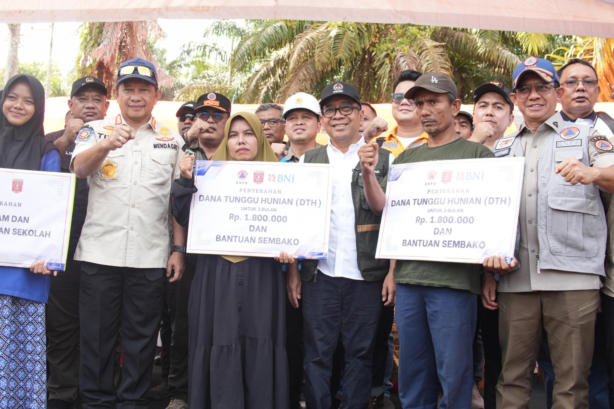 Sementara itu, Kepala BNPB Suharyanto menyampaikan bahwa pembangunan hunian sementara menjadi salah satu prioritas pada masa transisi dari tanggap darurat menuju tahap pemulihan. Selain pembangunan huntara, pemerintah juga mempercepat penyaluran Dana Tunggu Hunian. Hingga saat ini, sebanyak 2.279 kepala keluarga telah diusulkan sebagai penerima DTH, dengan 1.867 rekening telah disiapkan dan 1.393 DTH telah disalurkan kepada masyarakat terdampak.