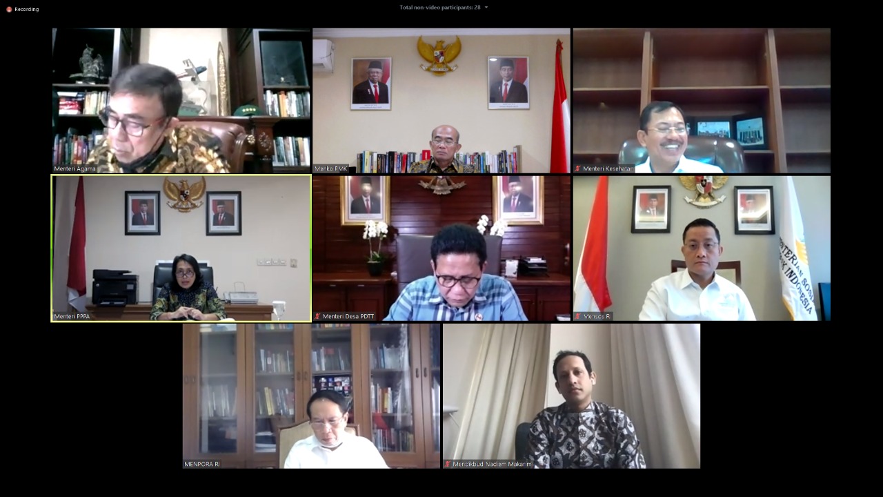 Hadir dalam RTM adalah Mensos, Menag, Mendikbud, Mendes PDTT, Menpora, Men PPPA, dan Menkes bersama para pendamping eselon satu.