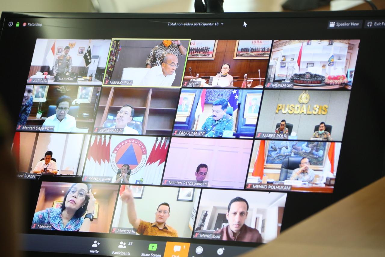 Turut berpartisipasi dalam RTM via video conference Menko Polhukam Mahfud MD, Menkeu Sri Mulyani, Menkes Terawan Agus Putranto, Mendagri Tito Karnavian, KaBNPB Doni Monardo, Menteri BUMN Erick Thohir, Menlu Retno Marsudi, Menteri Perdagangan Agus Suparmanto, Menperin Agus Gumiwang, Mensos Juliari P. Batubara, Mendikbud Nadiem Makarim, Mendes PDTT Abdul Halim Iskandar, Panglima TNI Hadi Tjahjanto, dan Kapolri Idham Azis.
