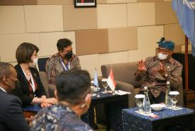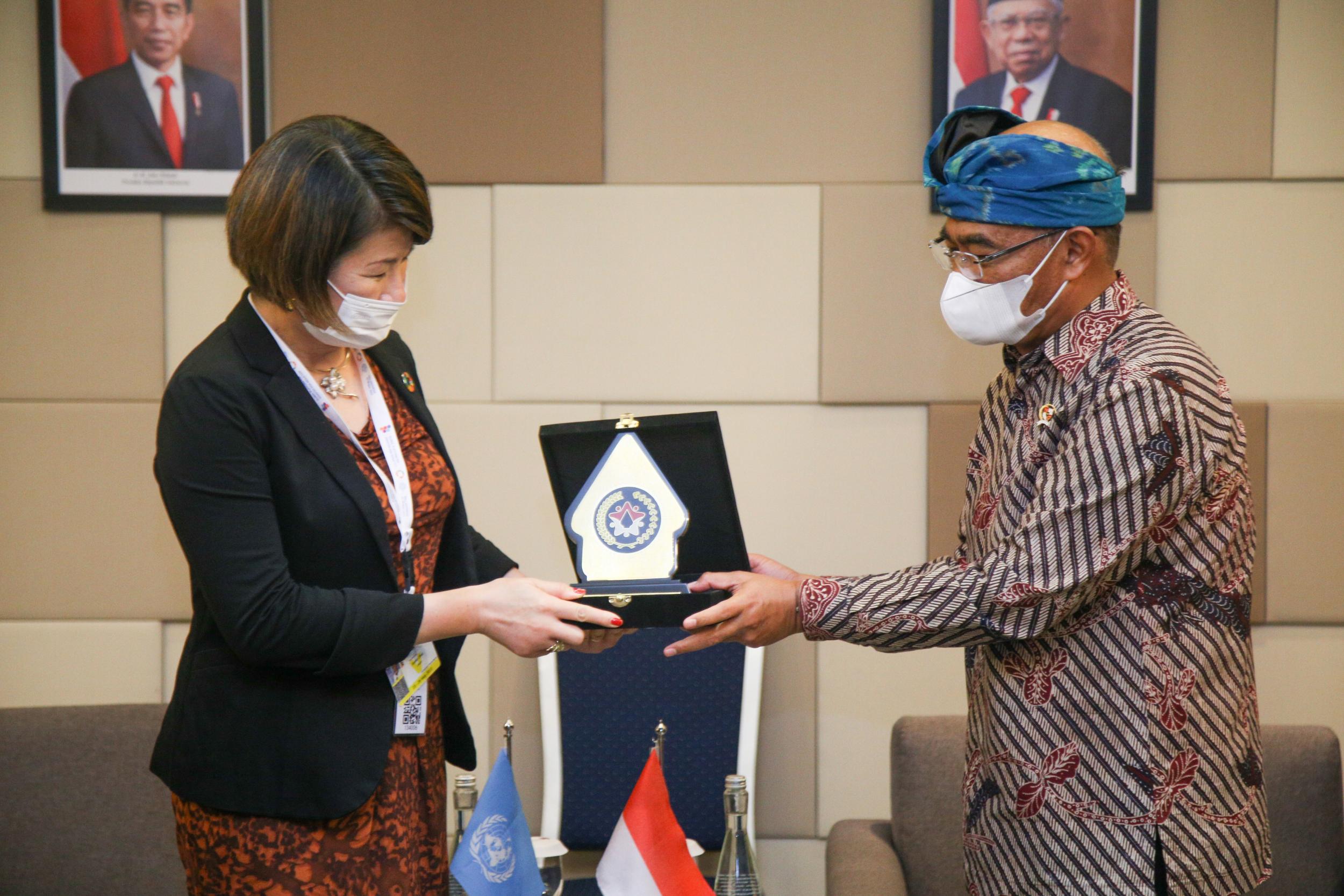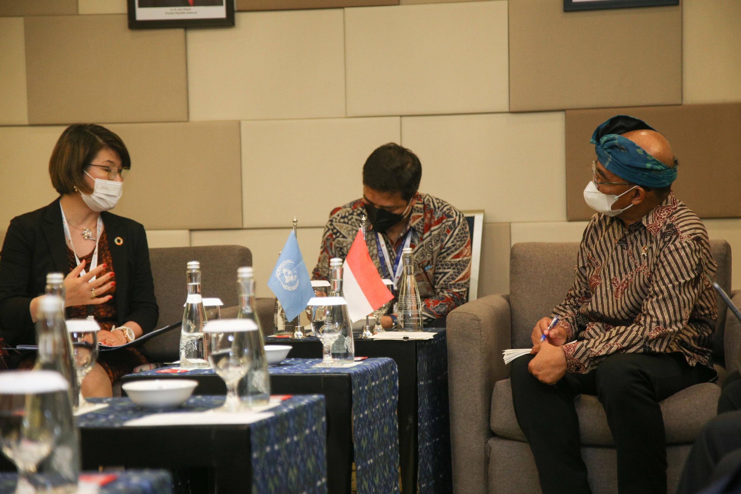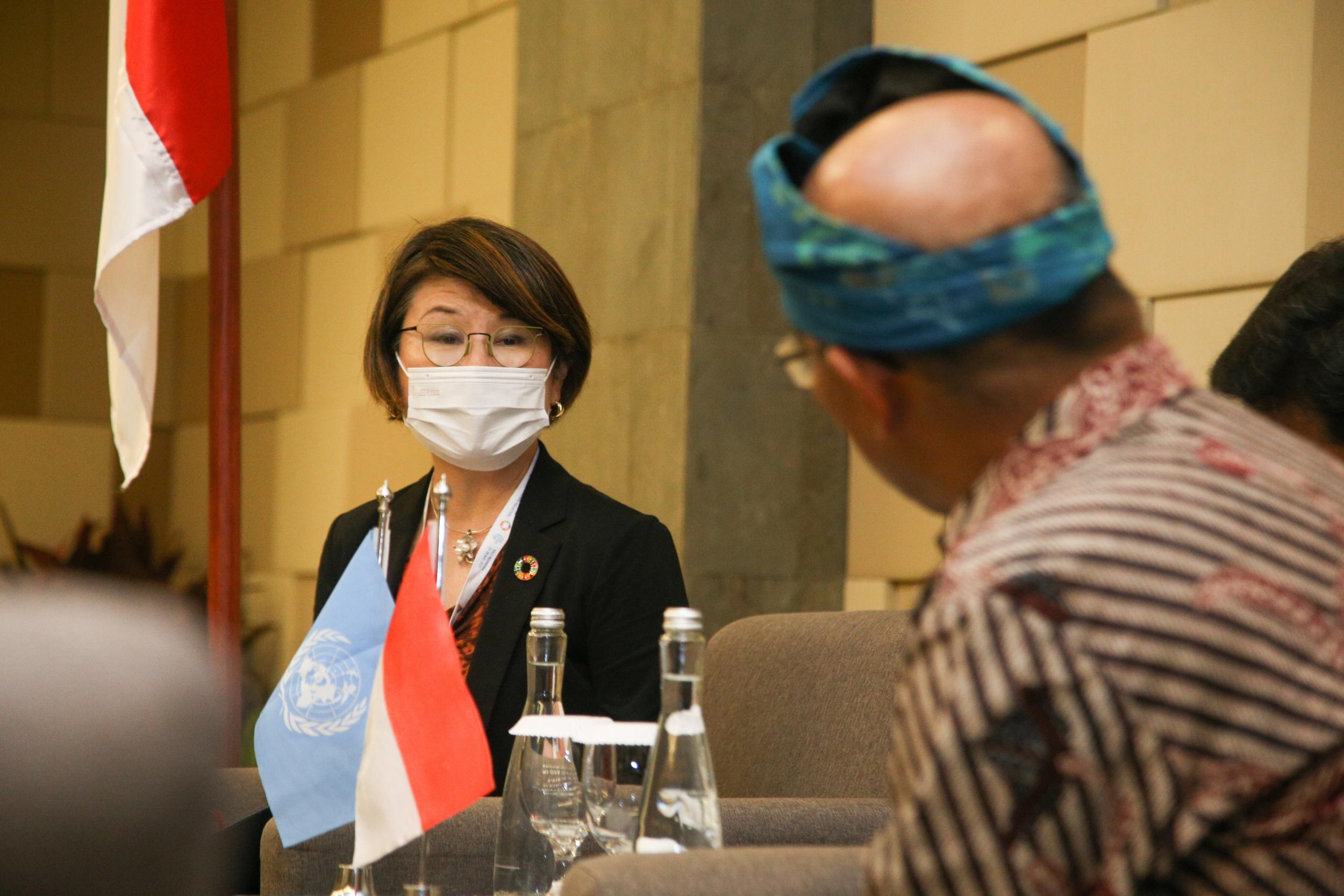Menteri Koordinator Bidang Pembangunan Manusia dan Kebudayaan (Menko PMK) pada Pertemuan Bilateral bersama UN Assistant Secretary General UNDP Asako Okai, Senin (23/5).