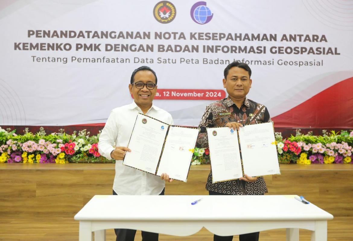 KEMENKO PMK — Kemenko PMK bersama dengan Badan Informasi Geospasial (BIG) mengumumkan kolaborasi strategis dalam pros