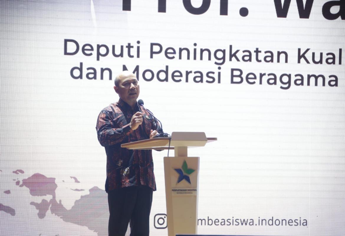 KEMENKO PMK -- Deputi bidang Koordinasi Pendidikan dan Moderasi Beragama Kemenko PMK Warsito menjadi pembicara kunci