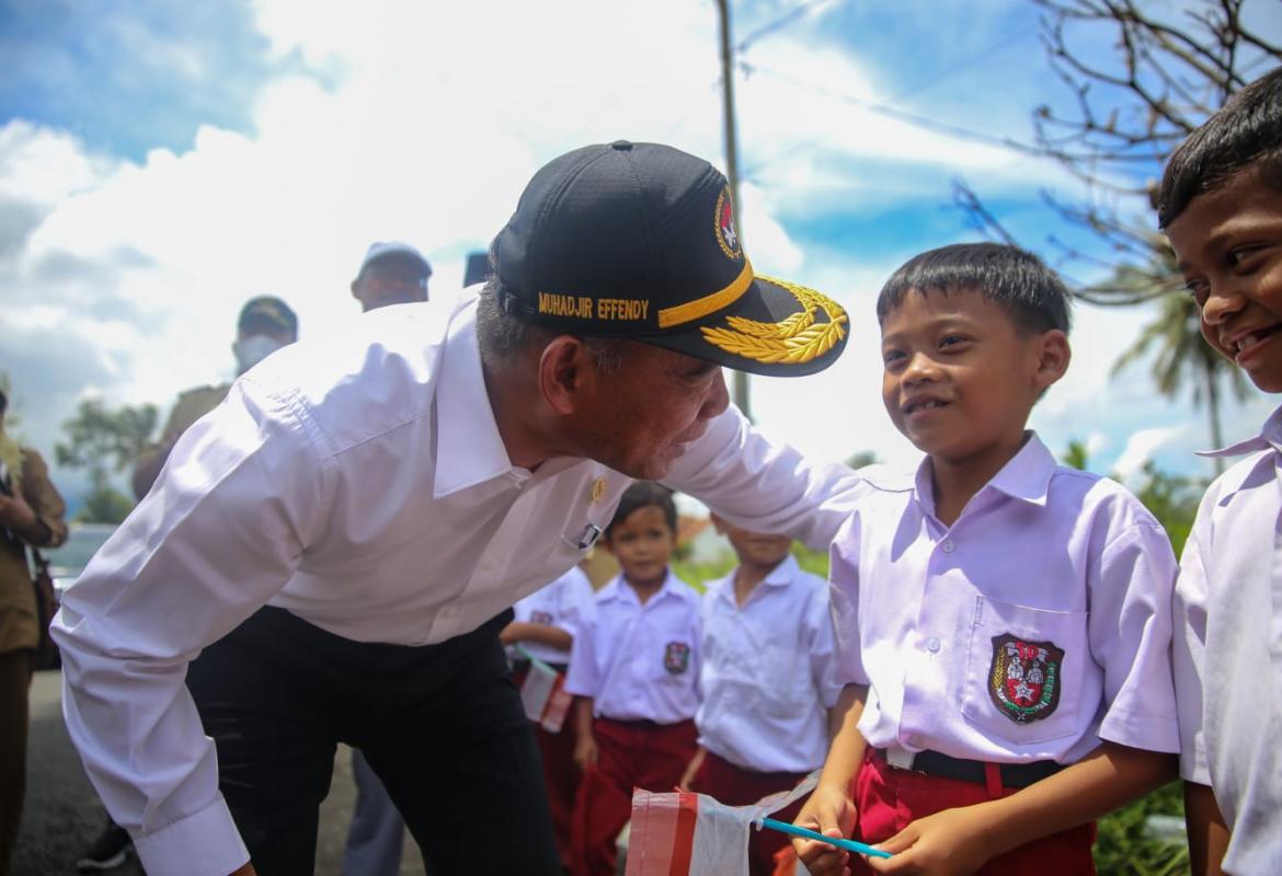 KEMENKO PMK -- Nyanyian jingle "Jo Kawin Bocah" (Jangan Kawin Anak) menyambut kedatangan Menko PMK Muhadjir Effendy d