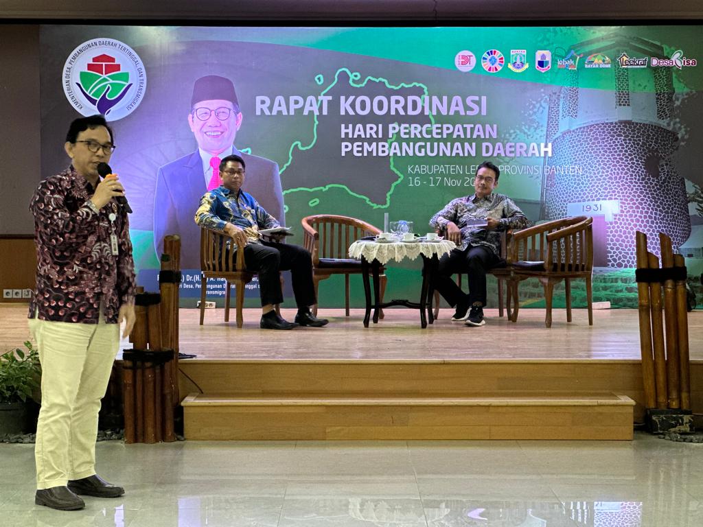 Asisten Deputi Pemerataan Pembangunan Wilayah Ivan Syamsurizal hadir menjadi narasumber dalam Rapat Koordinasi Peringatan Hari Percepatan Pembangunan Daerah di Aula Multatuli, Kabupaten Lebak, Banten (16/11). Dalam paparannya, Ivan menyampaikan, Kemenko PMK memperhatikan percepatan pembangunan daerah tertinggal melalui 3 (tiga) langkah yang disebut trilogi pemerataan pembangunan wilayah, yaitu koordinasi, sinkronisasi dan pengendalian penyelenggaraan layanan dasar, peningkatan kapasitas, dan kebijakan aksi afirmasi. Ketiga langkah ini merupakan aspek yang harus dipenuhi guna mewujudkan kesejahteraan masyarakat yang berkelanjutan, berkualitas, dan berkeadilan.