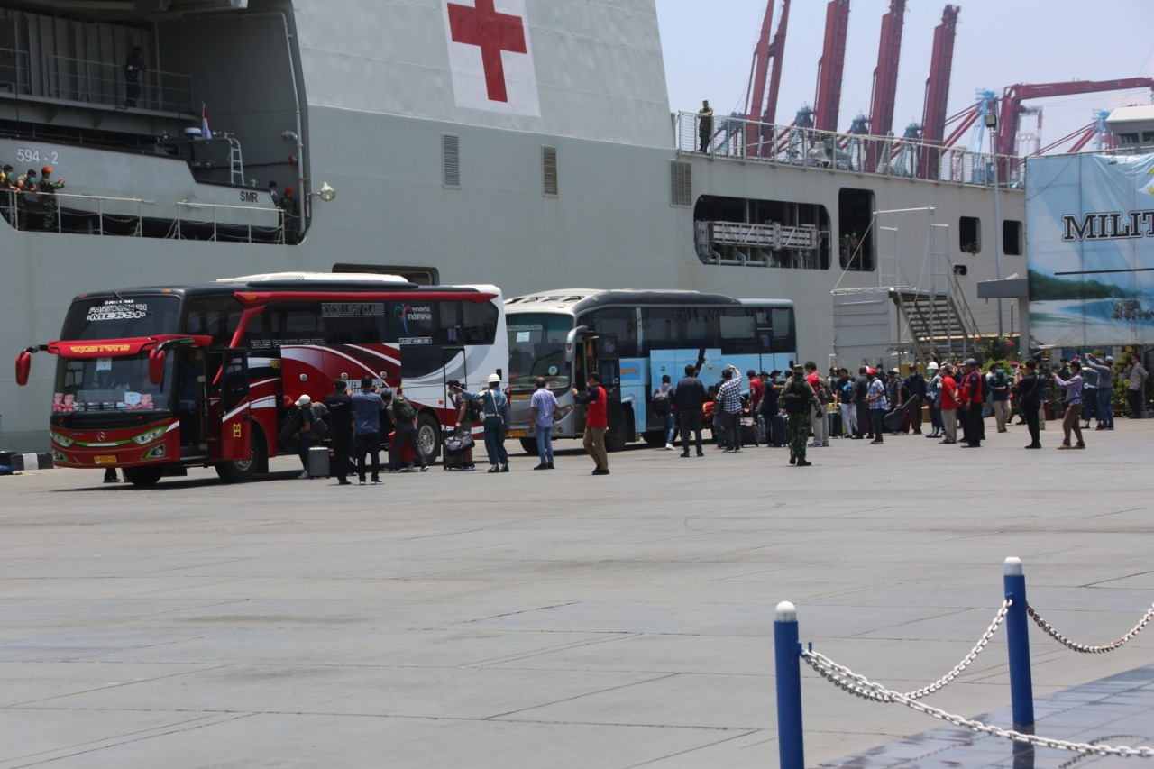 Sebelum dipulangkan, seluruh kru juga menjalani prosesi serah terima di Markas Komando Lintas Laut Militer (Kolinlamil), Tanjung Priok, Jakarta Utara. Prosesi dilakukan dari Pangkogasgabpad Laksamana Madya Yudo Margono ke perwakilan Kemenko PMK yakni Deputi Bidang Koordinasi Peningkatan Kesehatan Agus Suprapto dan Deputi Bidang Koordinasi Kerawanan Sosial dan Dampak Bencana Dody Usodo HGS.